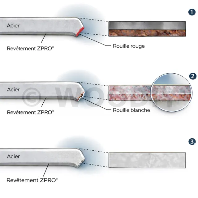 Techniquement, le ZPRO® offre une protection proche de celle d’une galvanisation à chaud de classe C3 (selon la norme EN ISO 12944) tout en étant une alternative économique à l’usage systématique d’acier inoxydable pour de nombreux projets bois extérieurs courants.